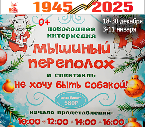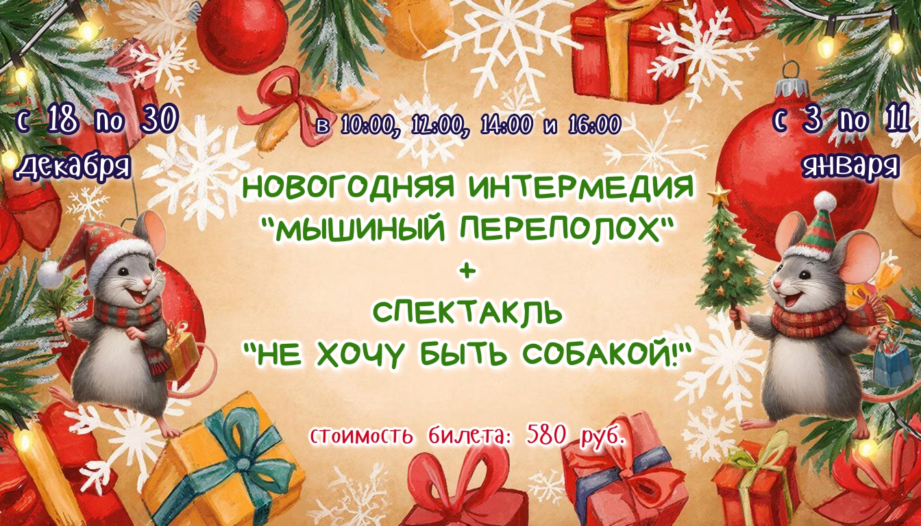 Дорогие зрители! В наличии появились билеты на новогоднюю интермедию на: 18 декабря в 10:00 и 12:00; 19 декабря в 14:00; 22 декабря в 10:00, 12:00 и 14:00. Напоминаем, что сегодня и завтра касса не работает, поэтому приобрести билеты можно будет в любой день, начиная со среды. Ждем вас!
