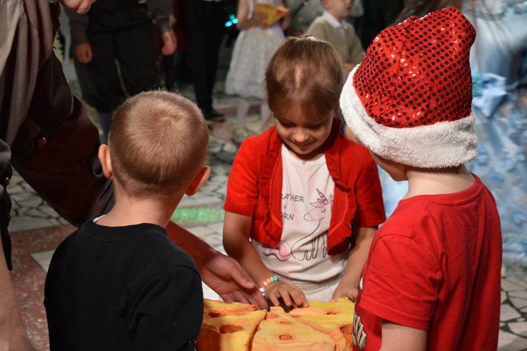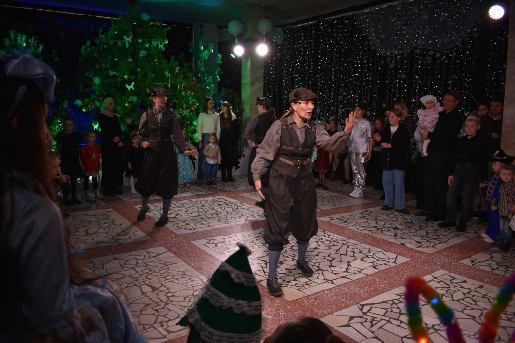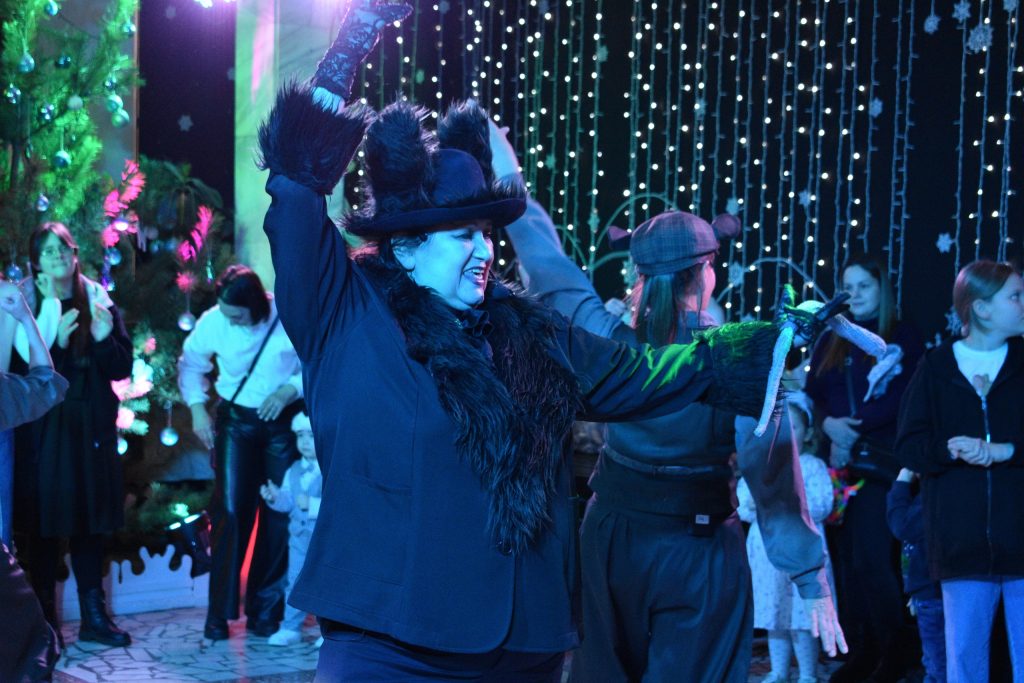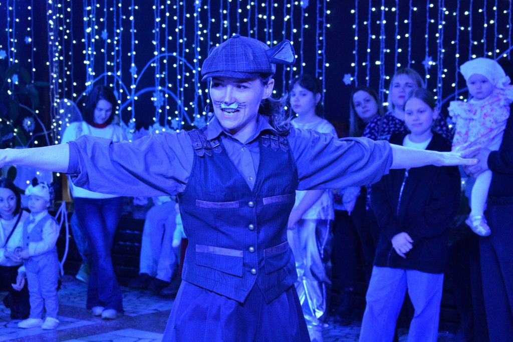 Сегодня к нам на новогоднюю интермедию приходили дети из семей бойцов специальной военной операции и многодетных семей, а также ребята с ограниченными возможностями здоровья. Почти сотня зрителей помогала трём мышкам договориться с кошкой о дружбе и совместном праздновании Нового года. Маленькие гости театра пробовали себя в роли пищащих крадущихся грызунов, прячущих сыр от посторонних глаз; участвовали в танцевальном батле, водили хоровод и «лепили» снеговиков. А в конце интермедии они поиграли с Дедом Морозом и Снегурочкой и рассказали им стихи.