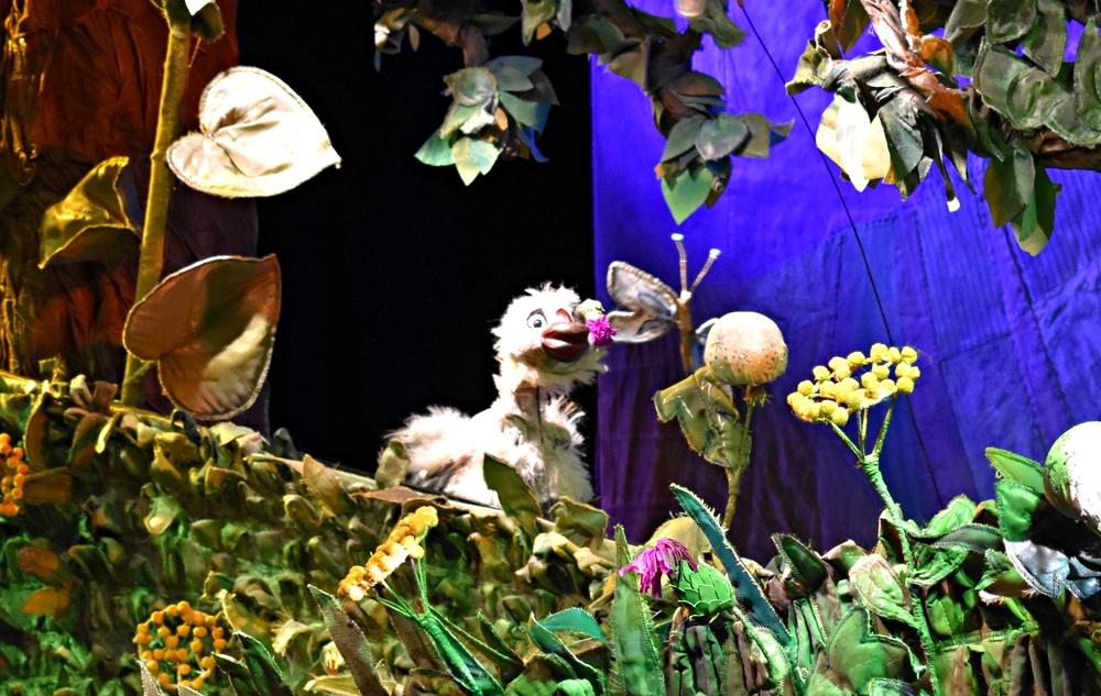 Курочка не вышла, зато вышел гусенок, главный герой спектакля. И вот тут-то малыш сначала нерешительно, а потом совсем смело шагнул в зал и заулыбался, смотря на белую гогочащую птичку.