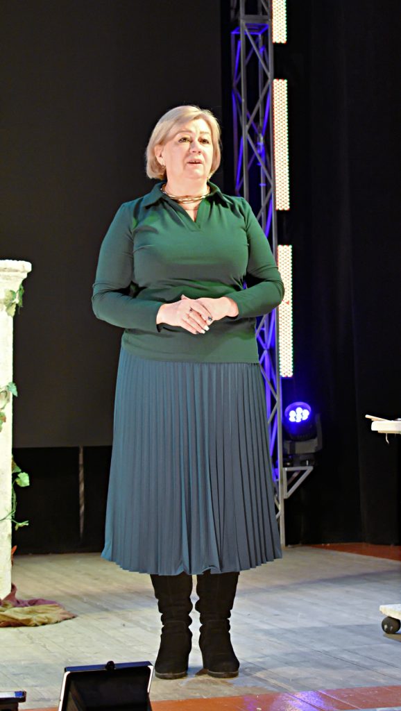 Перед началом спектакля с приветственной речью выступила депутат Собрания представителей Каменского района, председатель городского совета общественности, член партии «Единая Россия» Татьяна Плеханова: