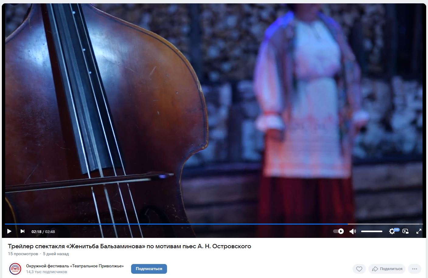 Трейлер победителя среди молодежных спектаклей, работы народного студенческого театра ПГУ «Кириллица» под названием «Женитьба Бальзаминова»: https://vkvideo.ru/video-181221409_456239869