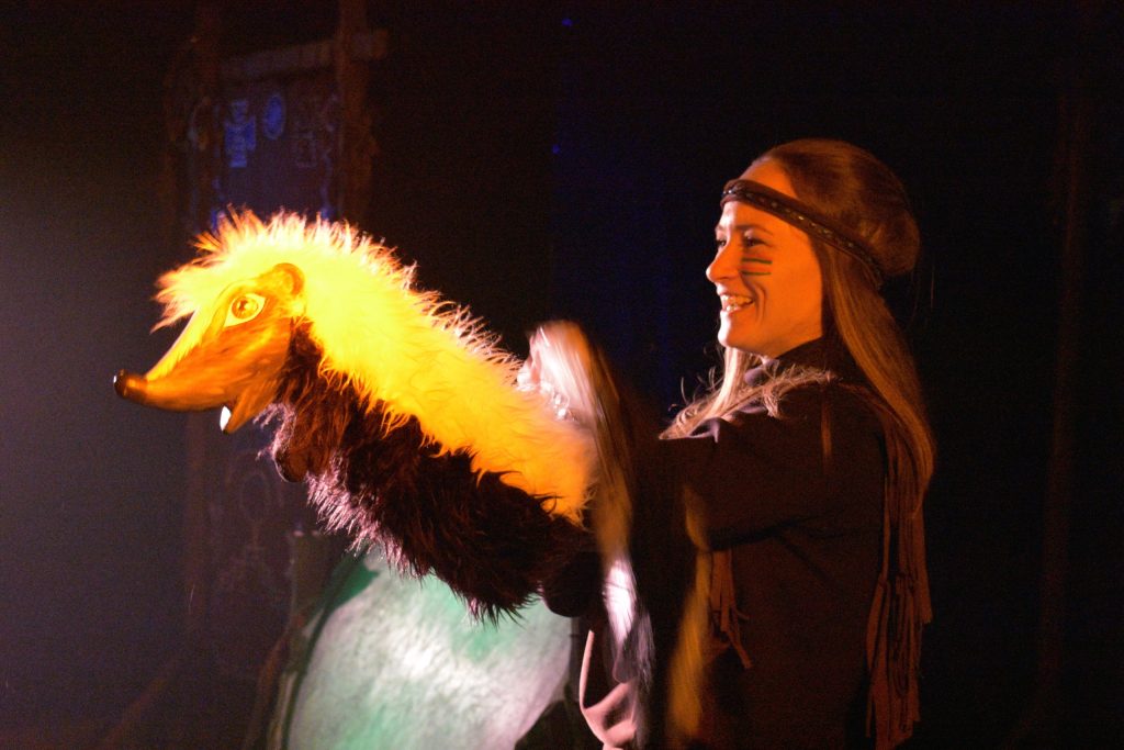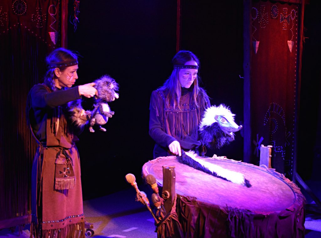 В «Кукольном доме» Международный женский день отмечали целых три дня! Праздник начался немного раньше: 7 марта зрители и журналисты канала «Россия 1. Пенза» первыми увидели восстановленный спектакль Юрия Уткина «Крошка Енот». Под ритмичные звуки индейского барабана на сцене появлялись актрисы, а затем и герои сказки.