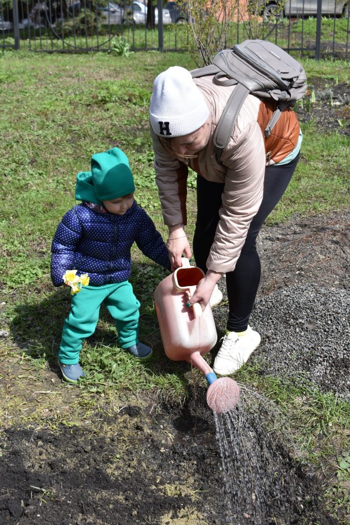 А после уборки работники театра (и один маленький помощник) приняли участие в акции «Зеленая Пенза 2026». Мы высадили несколько саженцев кизильника блестящего. Теперь территория возле «Кукольного дома» станет еще свежее и красивее!