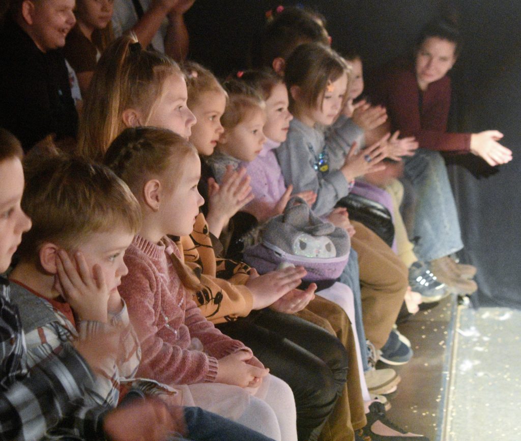 В волшебство бутафорной зимы в субботу и воскресенье погрузились ребята из школы №79 и школы №45, филиала «Созвездие» детского сада №143 и детского сада № 21 «Колосок», из центра «Семья» и воскресной школы «Ковчег» при храме преподобной Ефросинии Московской. Еще перед тем, как подняться в малый зал, гости переместились во времени в самый конец декабря: невесомые белоснежные холмы и зеленые елочки из ткани на окнах напомнили о скором празднике.