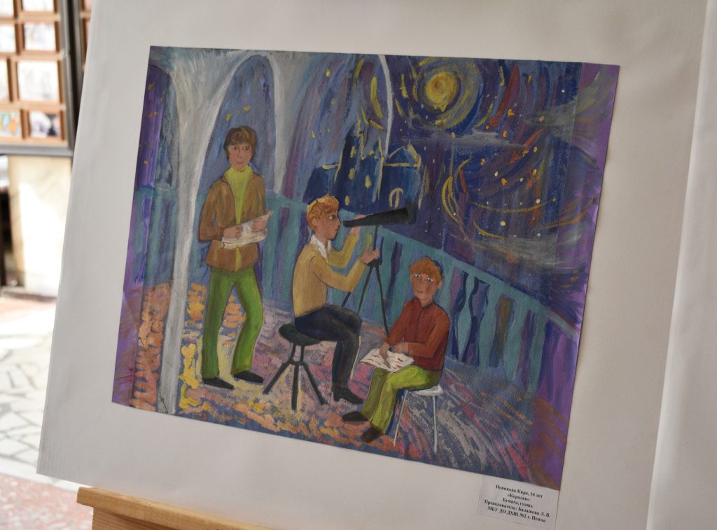 В честь этой даты в Пензенском областном театре «Кукольный дом» открылась выставка работ юных художников из Детской художественной школы №2 под названием «Дорога в космос».